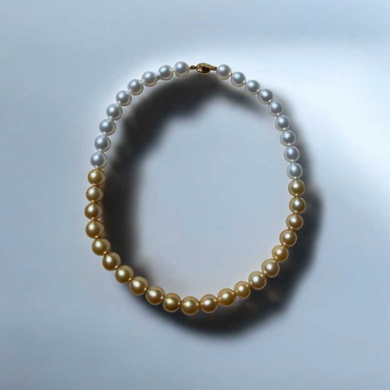 A stunning gradient of South Sea pearls — transitioning from luminous white to rich golden hues. A timeless statement of natural beauty and craftsmanship.